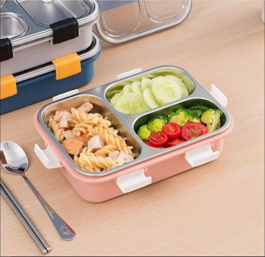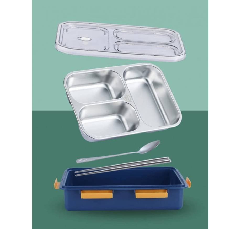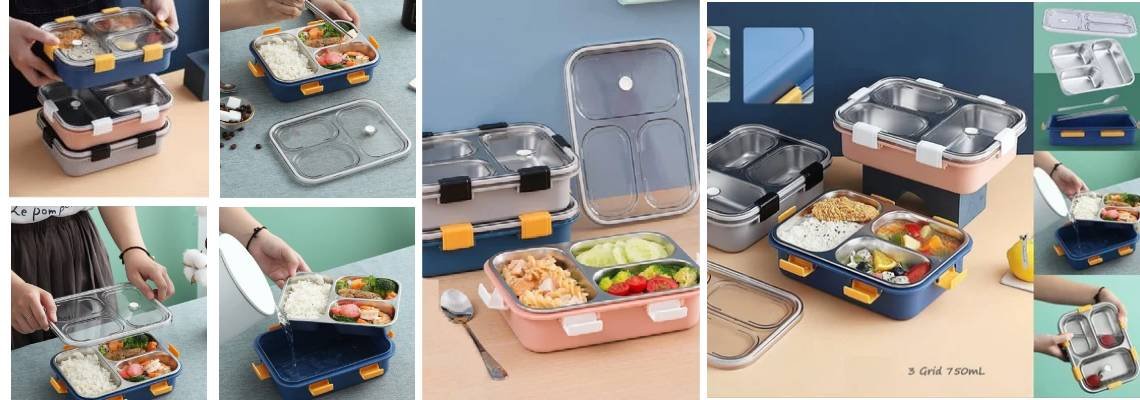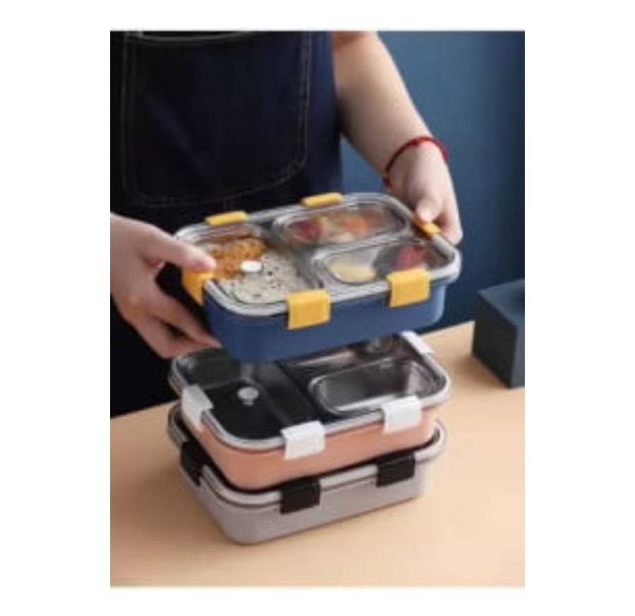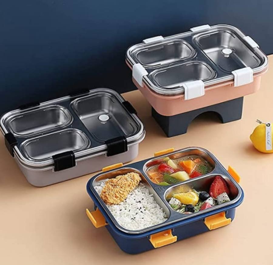 3 Compartment lunch boxes The lid fits tightly to the stainless steel food tray, so food does not run from one compartment to another, preventing food from mixing. With a 100% leak-proof bowl, you can store liquids such as sauces or yogurt in it lunch boxes