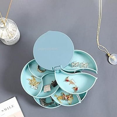 1. 4-layer storage tray: 4 layers of large capacity, perfectly organize all your jewelry or lipsticks, you no longer need to worry about confusion. Ideal for limited space, it can be stored at any time.2. Jewelry storage box with mirror: With a rotating mirror, it is convenient to put jewelry and lipstick.3. Protection: It can prevent scratches and damage to jewelry. It provides you with safe and practical storage space.4. Material: Rotatable jewelry storage box-made of ABS plastic, can ensure non-toxic, durable and easy to clean.5. 360-degree multi-compartment storage box with lid can isolate dust and better maintain the luster of jewelry. Decorate your house with an elegant appearance.