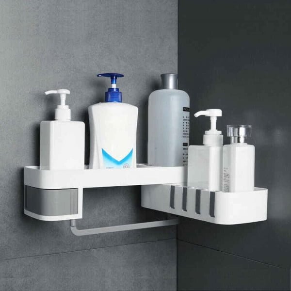 BATHROOM SHELVES CORNER STORAGE ORGANIZER RACK BOX WITH 4 HOOK