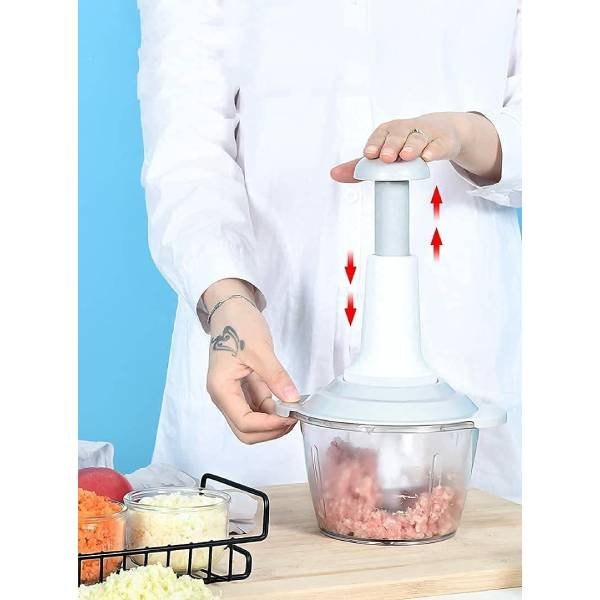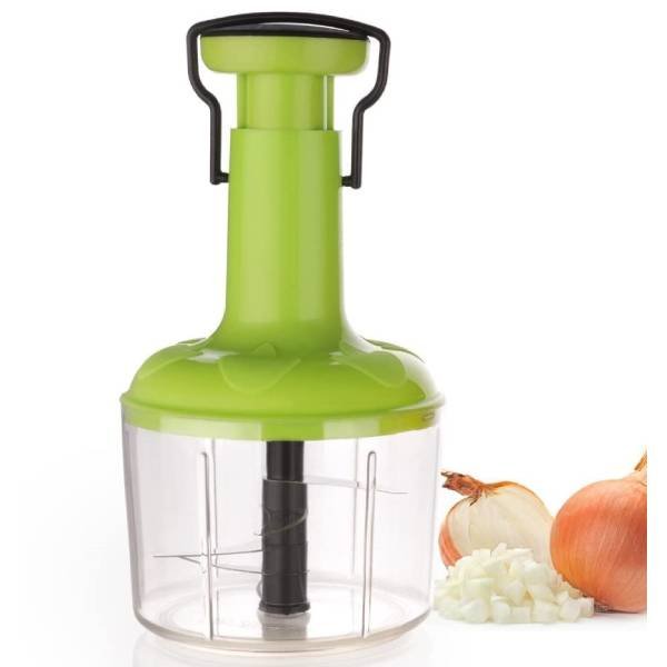 The chopper blade, thanks to its 3-leaf design, is really effective at chopping vegetables, fruits & herbs quickly with just a few pushes of the pump handle.