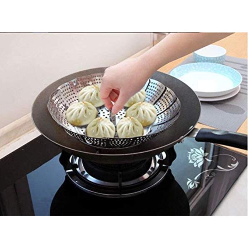 The basket features a collapsible design, making it compact and convenient for storage. It can expand and adjust to fit various pot sizes, allowing you to steam different quantities of vegetables or even multiple types of food simultaneously.